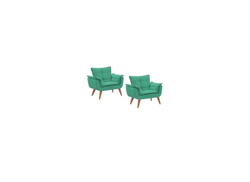 Promoção -Kit 02 Poltronas Decorativas Opala Suede Turquesa