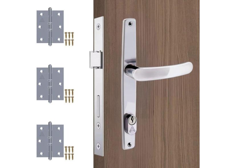 Fechadura Para Porta Externa Perfil Estretiro + Dobradiças