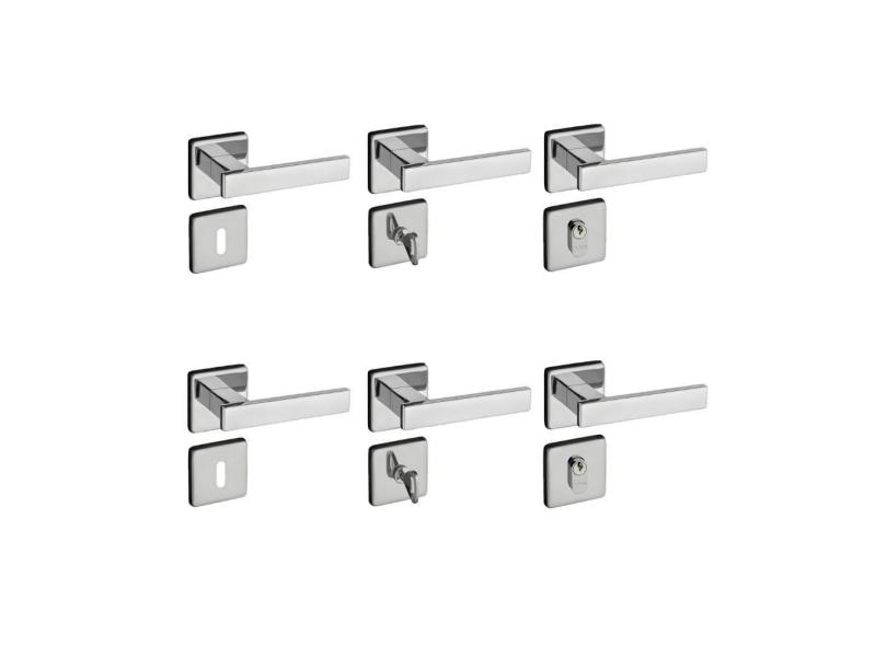 Kit 2 Fechaduras Interna 2 WC 2 Externa Quad Pado Cromado