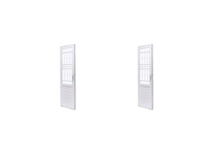 Kit com 2 Portas de Aço com Postigo 215x83cm com Grade Quadriculada e Vidro Liso Unicsol Ramassol Branco