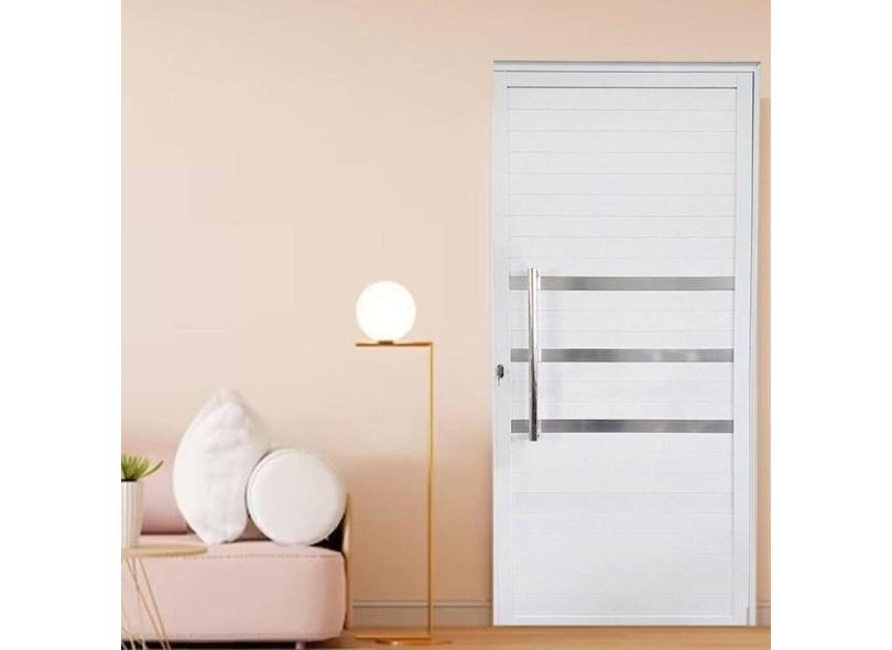 Kit com 2 Portas Lambril de Alumínio Esquerda 210 X 90cm com Friso Linha Veneza Esquadrias Bergame Branco