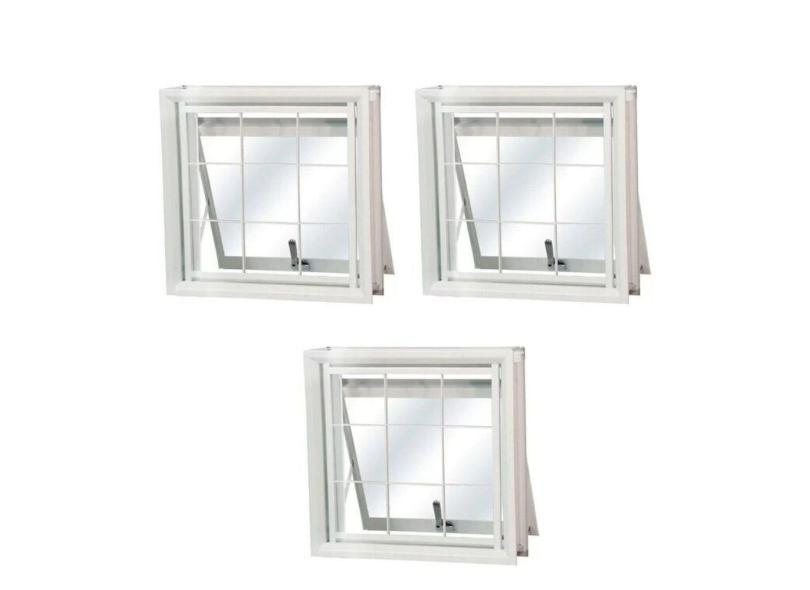 Kit com 3 Janelas de Aço Maxim-Ar 50x50cm com Grade Minas Sul MGM Branco