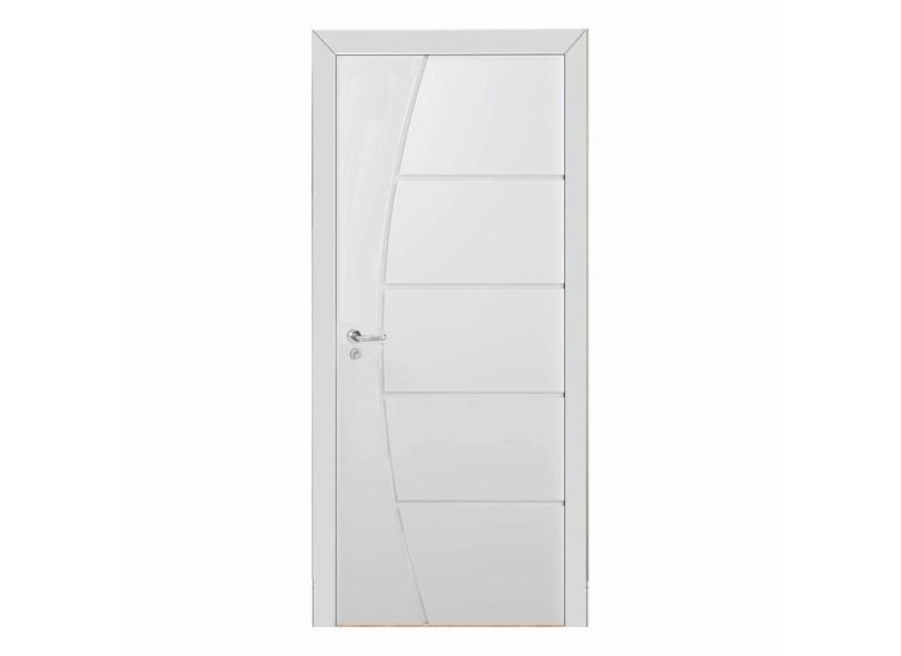 Kit Porta de Madeira 210x80cm Frisada Laqueada Esquerda Moldufama Branco