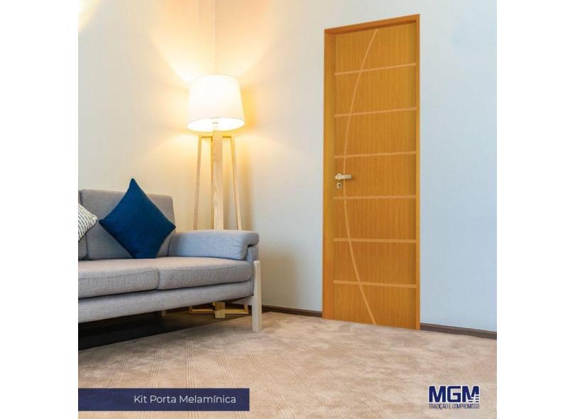 Kit Porta de Madeira Decorada 212x75cm com Batente de Alumínio 3,6cm Neblina MGM Mogno