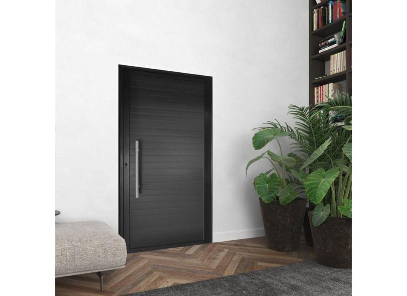 Porta Alumínio 100x210cm Lambril com Puxador Lado Esquerdo Hale Esquadrias Preto
