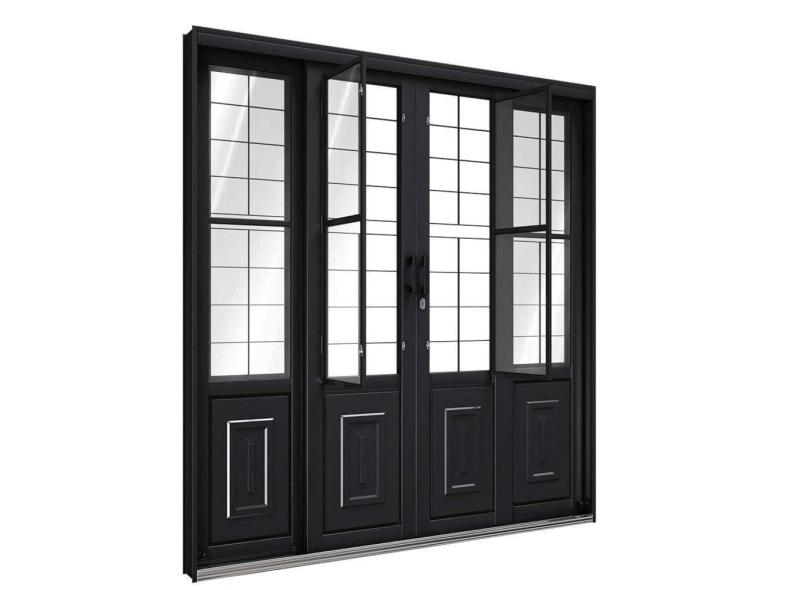 Porta de Aço de Correr com Postigo e Grade Quadrada 4 Folhas 213x200cm Facilitá Lucasa Preto