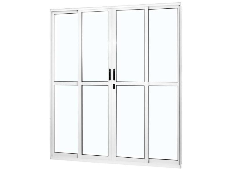 Porta de Aluminio de Correr 210x160cm 4 Folhas 2 Fixas com Vidro Liso Temperado MGM Branco