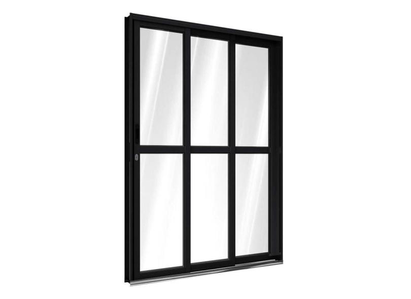 Porta de Aluminio de Correr Lateral com Travessa 2 Folhas móveis e 1 Folha Fixa 213x150cm Riobras Preto