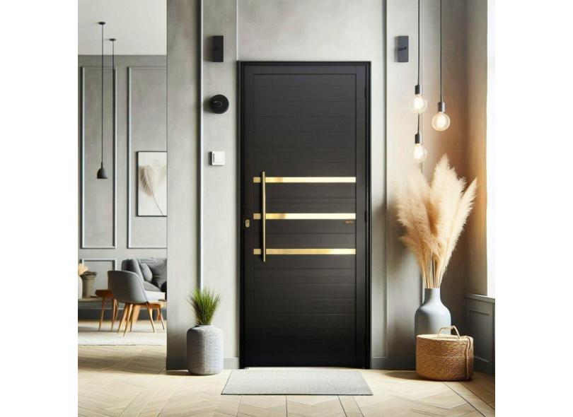 O menor preço encontrado no Brasil para Porta de Aluminio Lambril 210x90cm Frisada com Puxador Super Brimak Preto Dourado atualmente é R$ 2.399,99.