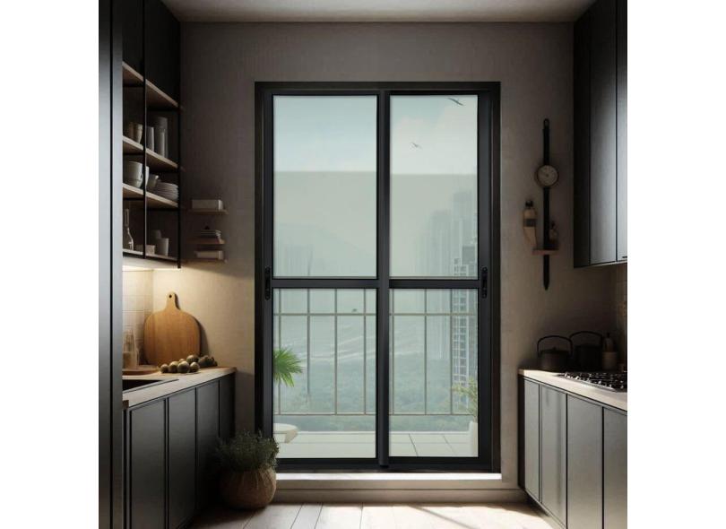 Porta de Correr 2 Folhas Moveis 210 X 200 Elite com Fecho Automático Vidro Liso Preto