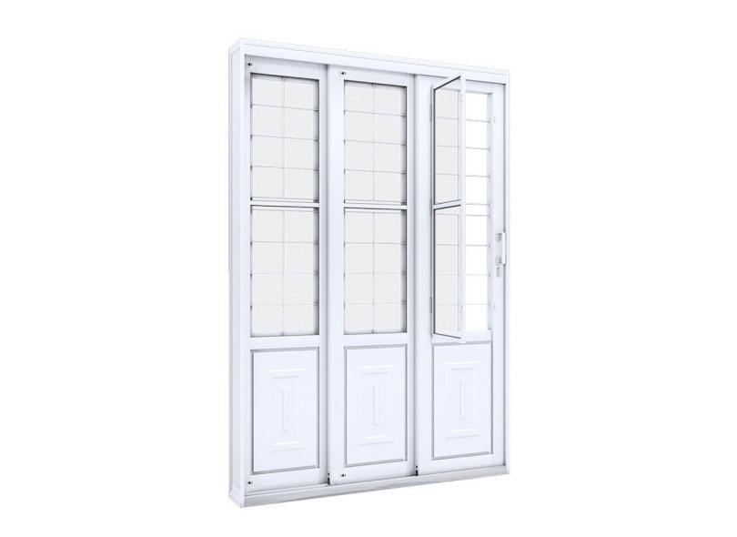 O menor preço encontrado no Brasil para Porta de Correr Aço Lateral com Postigo e Grade Quadrada 2 Folhas Móveis e 1 Fixa Lucasa Facilità 213cmx150cmx17cm Branco atualmente é R$ 2.926,99.