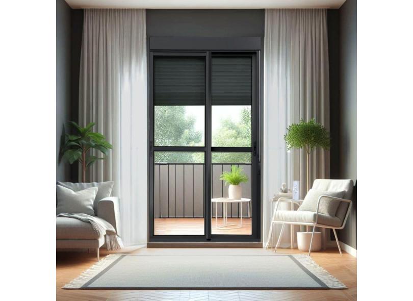 Porta de Correr com Persiana Integrada 2 Folhas Móveis 230 X 150 Elite com Fecho Automático Vidro Li Preto