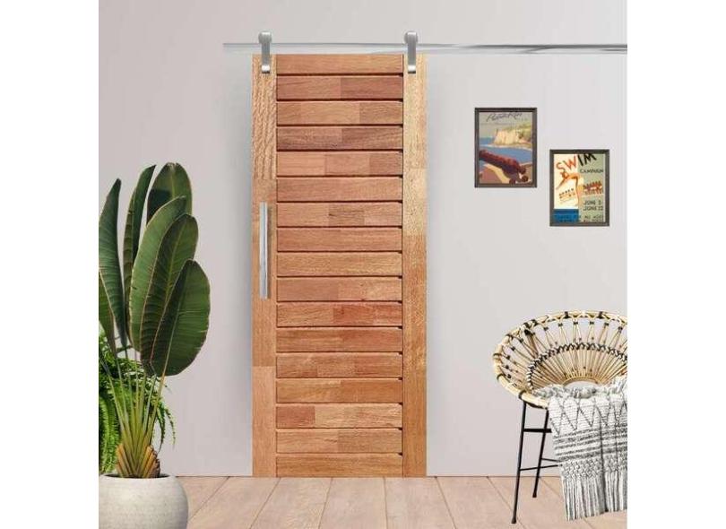 Porta De Correr Completa Comercial Em Madeira Maci a Cedro Ar