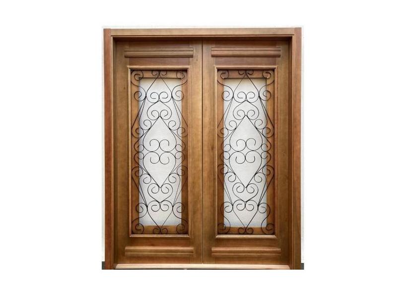 Porta Dupla Madeira Maciça/Ferro Completa 186x213x16cm Cedro Rosa