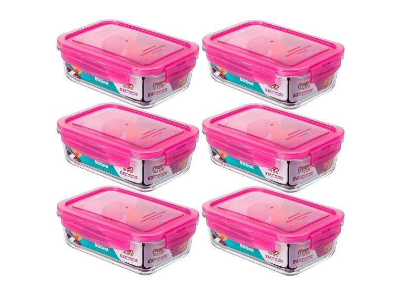 Kit 6 Potes De Vidro Herméticos Marmitas Retangulares 800Ml Sanremo Tampa