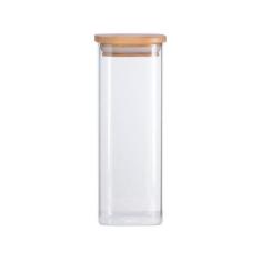 Pote de Vidro Quadrado 400ML com Tampa de Bambu Flat - Oikos