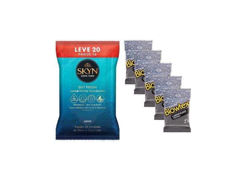 Kit Preservativo Blowtex Lubrificado c/ 15 Un. + Lenços Umedecidos Skyn Leve 20 Pague 16