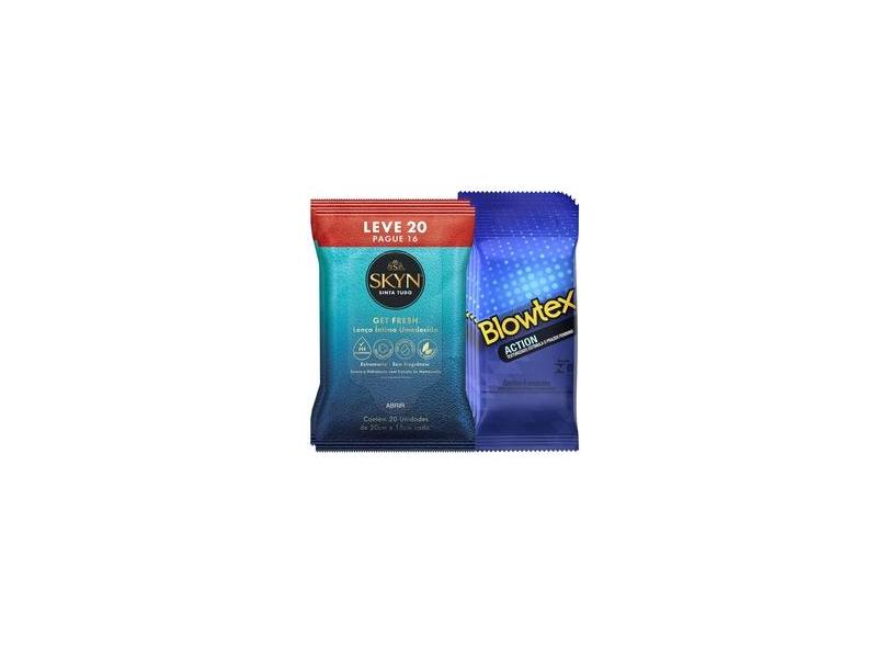 Kit Preservativos 5 Pacotes Blowtex Action com 6 + 2 Lenços SKYN L20P16