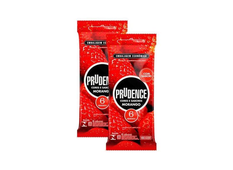 Preservativo Prudence Cores e Sabores Morango 6 Unidades Kit com duas