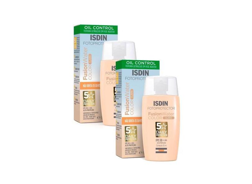 Kit 2 Protetor Solar Facial Isdin Fusion Water 5 Stars Color FPS 50 Co