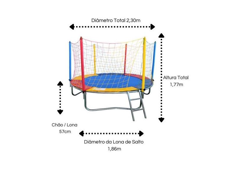 Cama Elástica Pula Pula 2,30m Nacional + Piscina de Bolinhas 1,50m + 1000 Bolinhas Coloridas