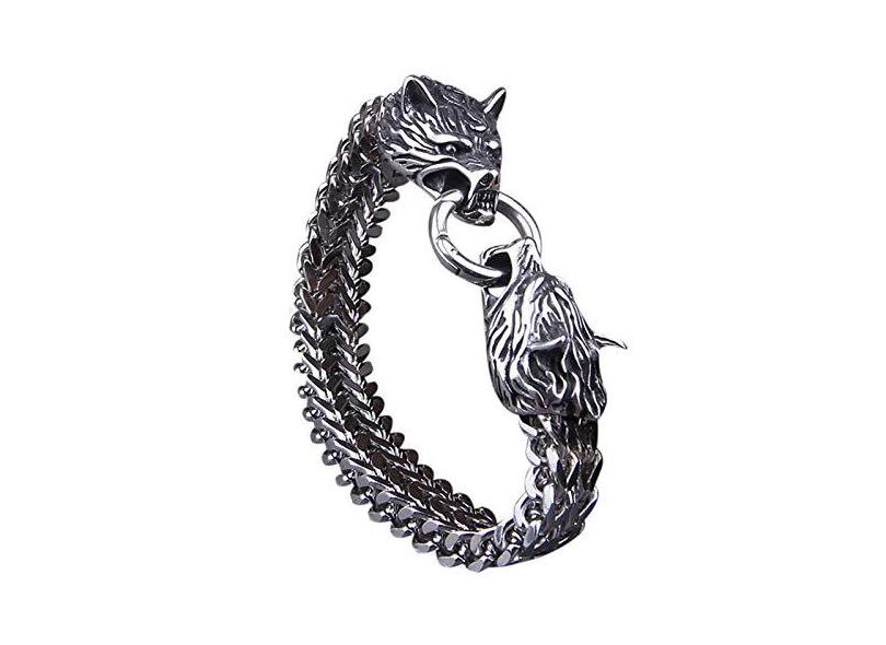 Faston Pulseira Viking Fenrir Head de aço inoxidável masculina e feminina moderna