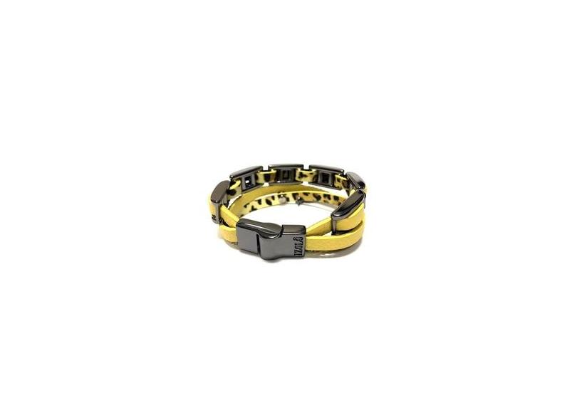 Pulseira Armazem RR Bijoux couro grafite amarela