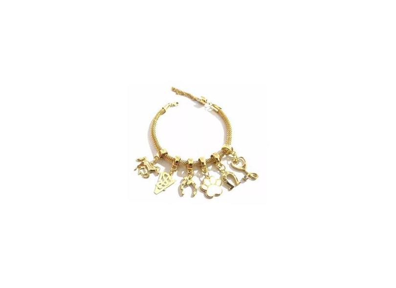 Pulseira Berloque Cavalo Pata Ferradura Esteto Folheado