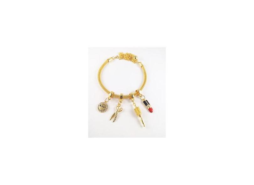 Pulseira Berloques Cabeleireira Batom Escova Folheado 18k