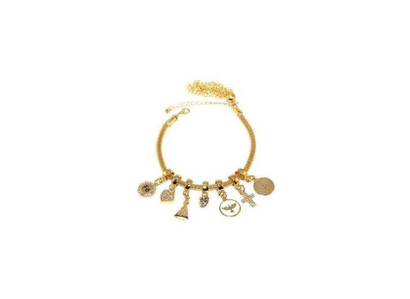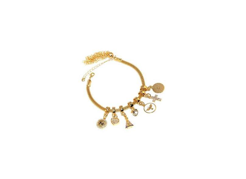Pulseira Berloques Religiosa Oração Aparecida Folheado 18k
