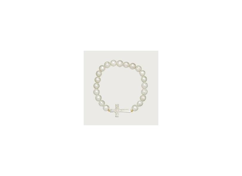 Pulseira Crucifixo em Ouro 18k com Pérolas Cultivadas e Madre Pérola