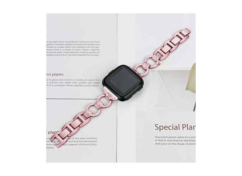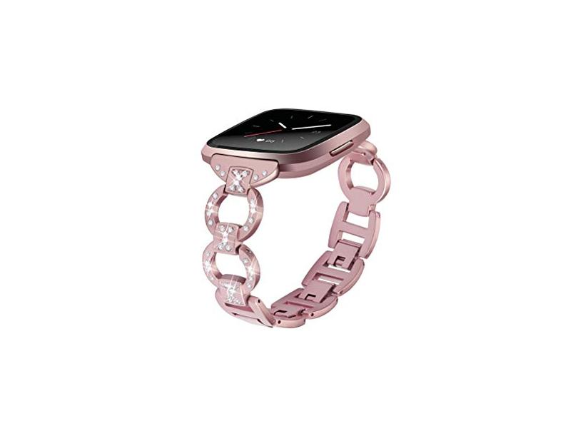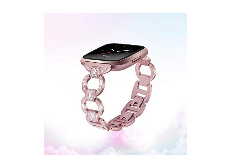Pulseira de aço inoxidável para Fitbit Versa pulseira de relógio pulseira de diamantes strass pulseira para Fitbit Versa (rosa rosa)