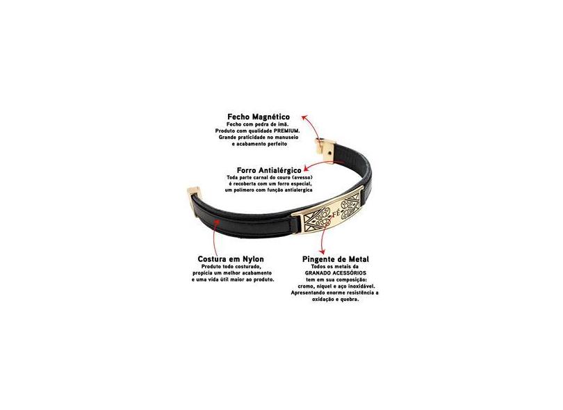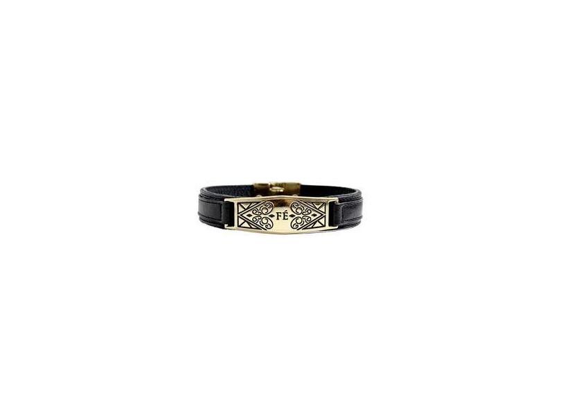 Pulseira de Couro Masculina Feminina Detalhes Fé Magnética Religiosa Deus
