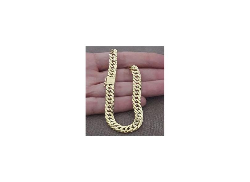 Pulseira de Ouro 18k Masculina Groumet Elo Duplo c/ Fecho Gaveta - 22 cm ( 6,2mm ) - 7.3gr