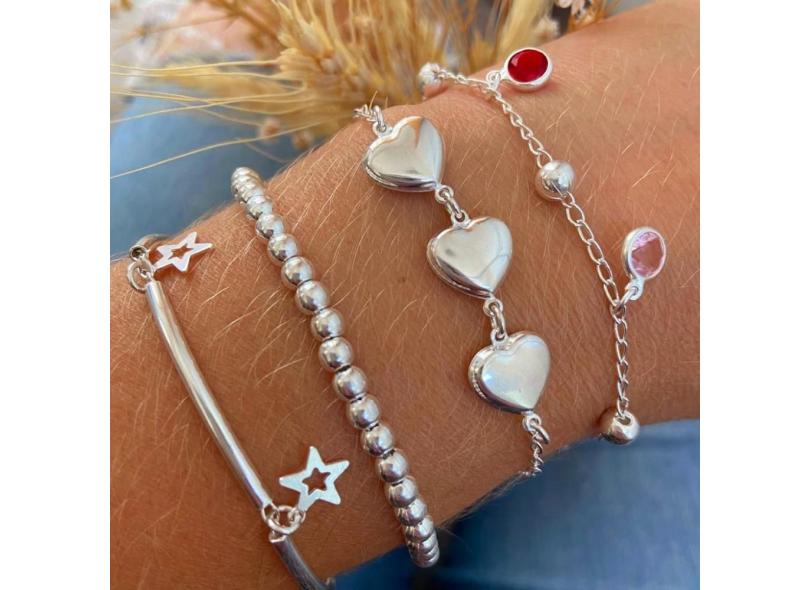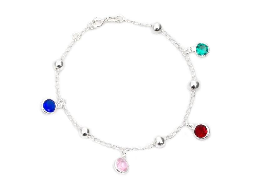 Pulseira de prata bolinhas e zircônias coloridas penduradas