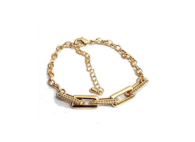 Pulseira dourada com quadrados, cravejados, banhada a ouro