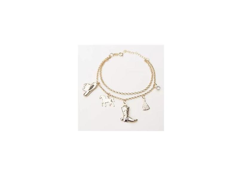 Pulseira Dupla Country Chapéu Bota Cavalo Folheado