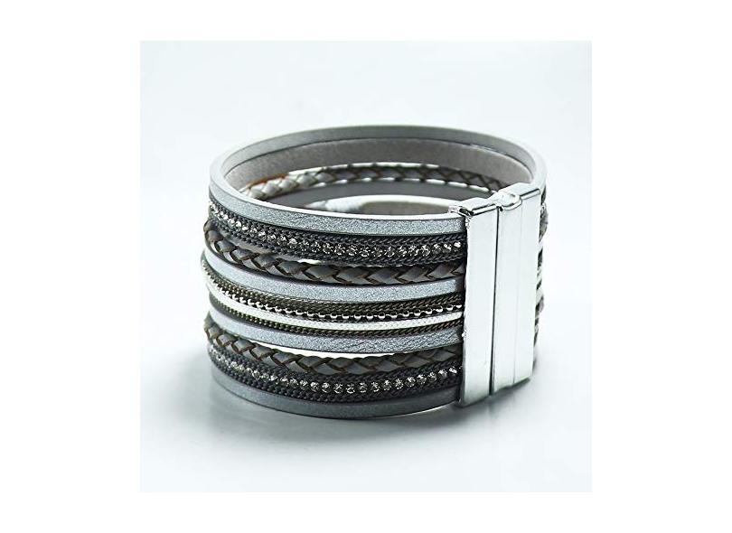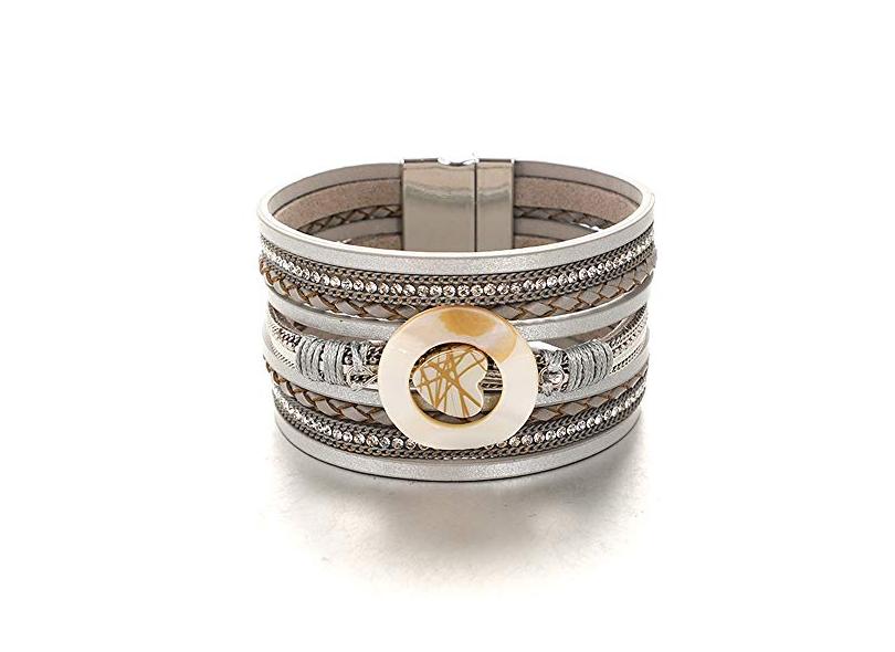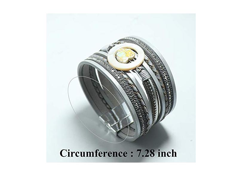 O menor preço encontrado no Brasil para Pulseira KSQS de couro de pérola com várias camadas, pulseira de fivela larga Boho, bracelete de punho à prova d'água para mulheres atualmente é R$ 57,58.
