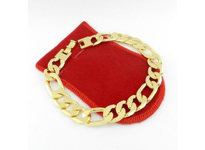 Pulseira Masculina 23Cm 12Mm Largura Folheada Ouro Pl187