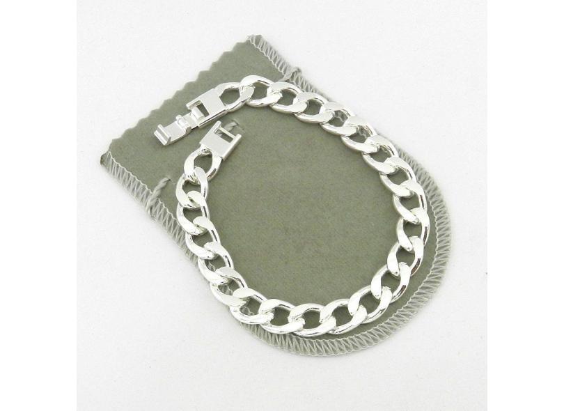 Pulseira Masculina 23cm 1cm Largura Folheada Prata PL109