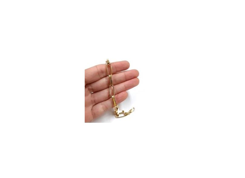 Pulseira Masculina Alongada Ouro 18k Quadrada 22,5cm 7,30gr