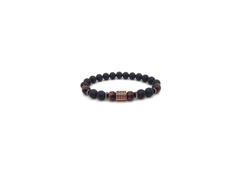 Pulseira Masculina Pedra Ágata Matte Com Entremeio Rose