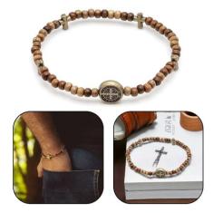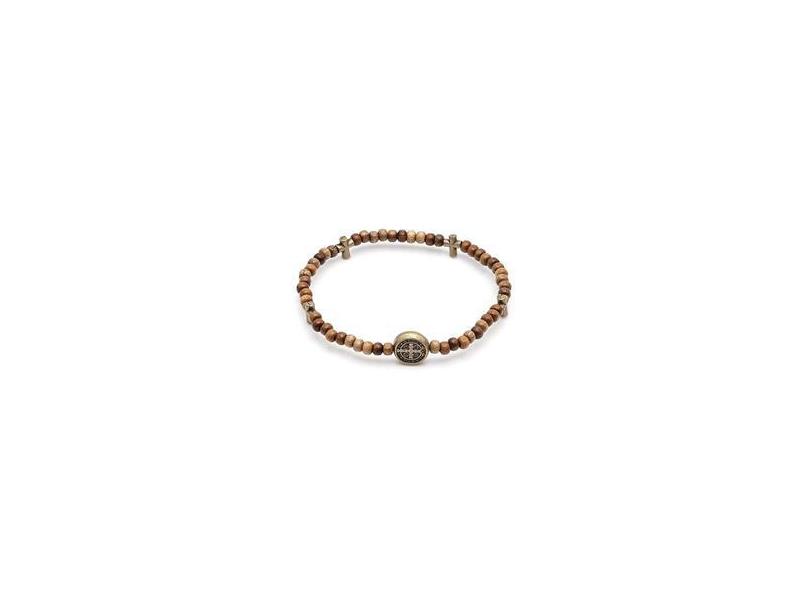 Pulseira Mini Terço Medalha de São Bento Marrom
