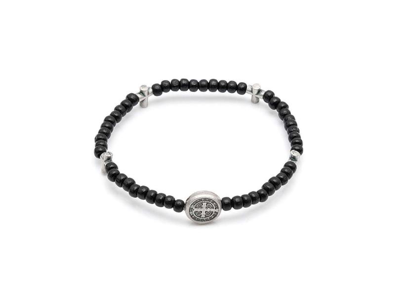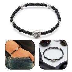 Pulseira Mini Terço Medalha de São Bento Preta
