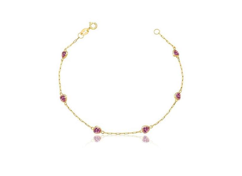 Pulseira Ouro 18k 750 Com Pedras Zircônias Coração 4mm - 18cm Rosa