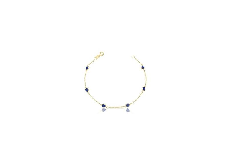 Pulseira Ouro 18k Pedras Zircônias Coração 4mm 19cm Azul Safira