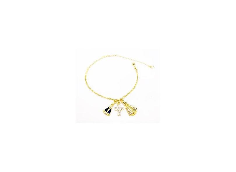 Pulseira Religiosa Aparecida Cruz Folheado A Ouro 18k
