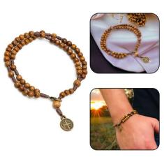 Pulseira Terço de Pulso Com Medalha de São Bento Madeira Imbuia