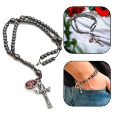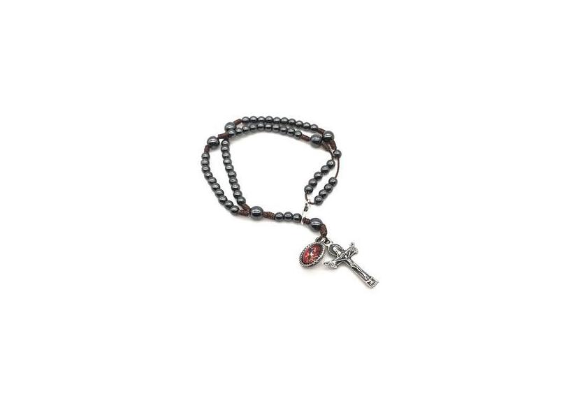 Pulseira Terço de Pulso Hematita Com Pingente de São Miguel