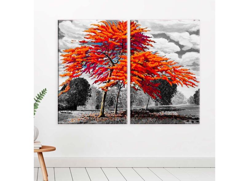 Conjunto De 2 Telas Decorativa Pintura Árvore Laranja